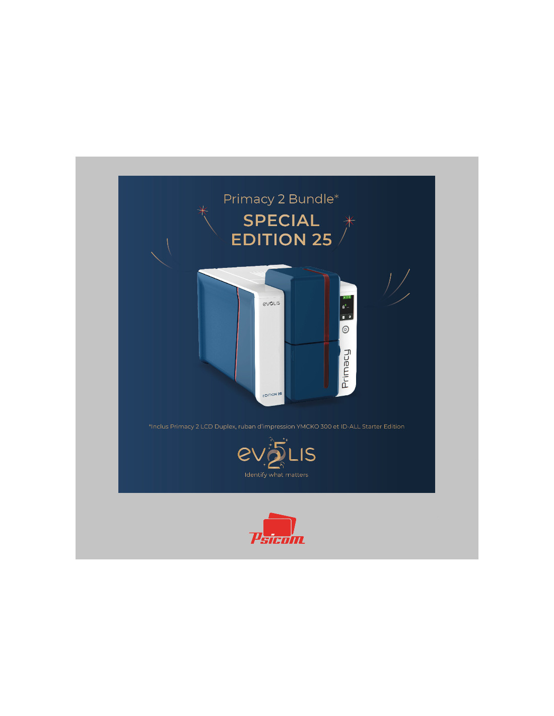Primacy 2 Duplex – Imprimante à cartes plastiques Evolis pour impression double face - Usb & Ethernet - livrée avec CardPresso XXS