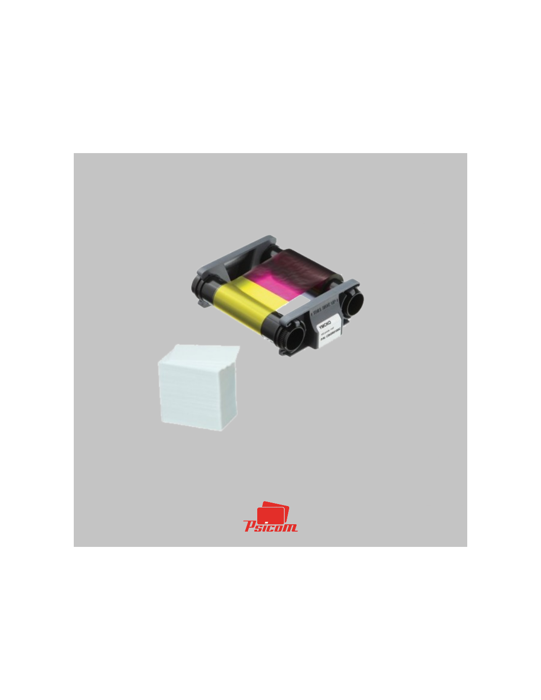 - 1 ruban couleurs YMCKO pour 100 impressions. 1 lot de 100 cartes PVC CR80 blanches laminées (épaisseur 0.76mm - format iso 86x54mm).