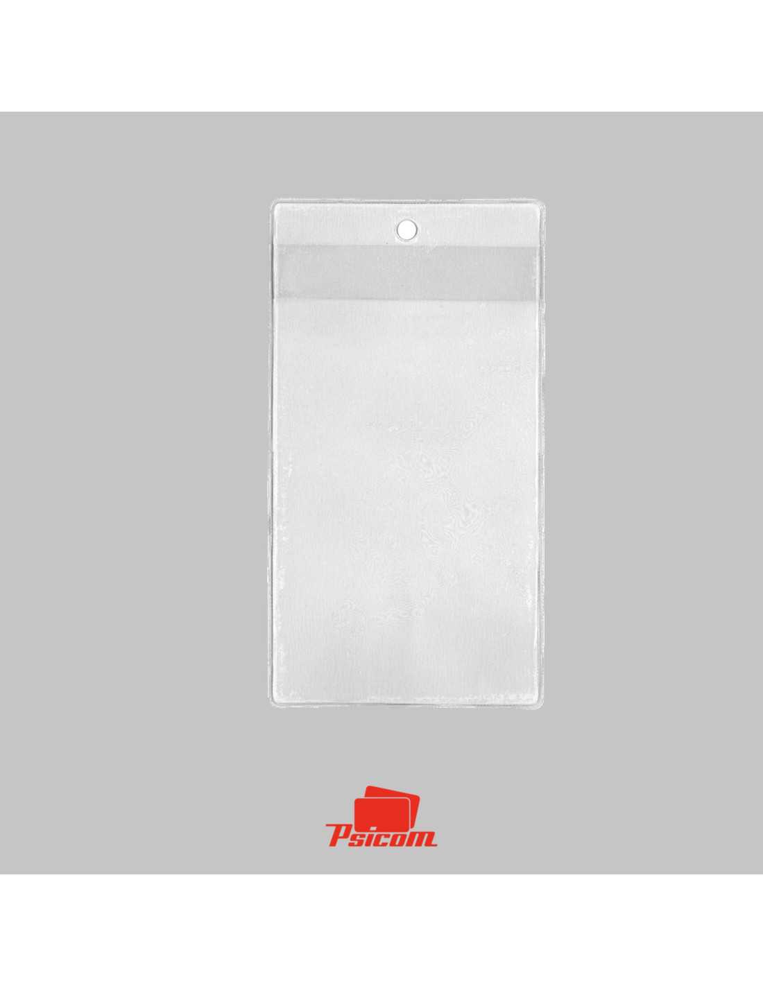 Référence : PSICA049 - Porte-badge souple en vinyle transparent - Modèle vertical - Pour carte 80 x 135 mm de 0,2 à 0,76 mm - Perforation ronde pour chaînette et cordon - conditionnement par 100 - poids : 5,82 gr.