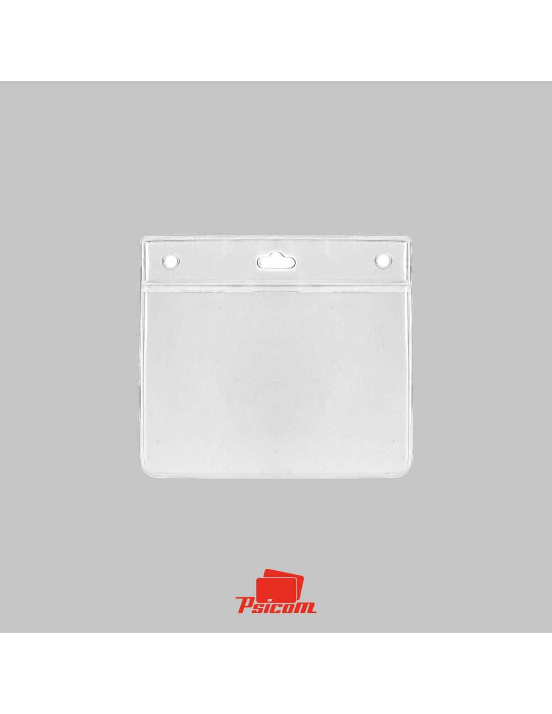 Référence : PSICAPBSGF2 - Porte-badge souple en PVC transparent - Modèle horizontal - Pour carte 98 x 67 mm de 0,2 à 0,76 mm - Perforation oblongue pour clip et ronde pour chaînette et cordon - conditionnement par 100 - poids : 3,54 gr.