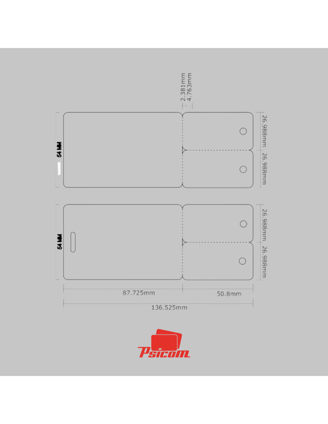 - Mini-cartes coins arrondis 28 x 54 mm / Tri-cartes 86 x 54 mm (3 mini-cartes 28 x 54 mm) / 1 CB + 2 mini-cartes 50.8 x 26.9 mm / 1 CB + 3 mini-cartes 54 x 28.5 mm