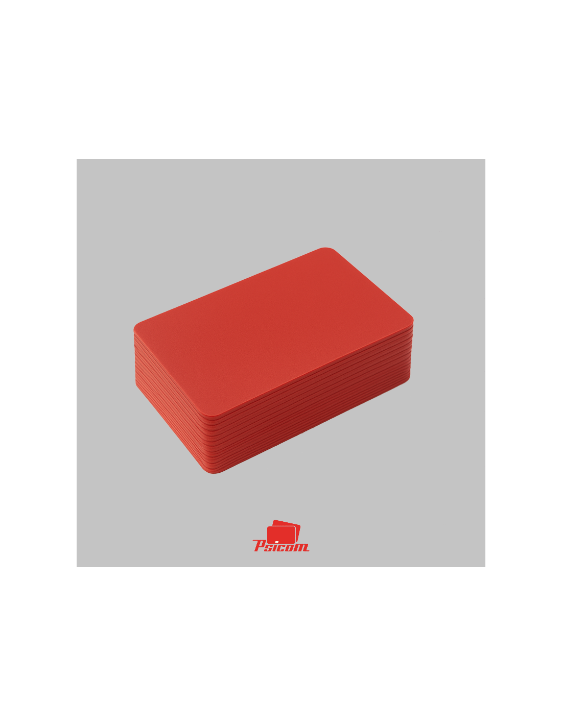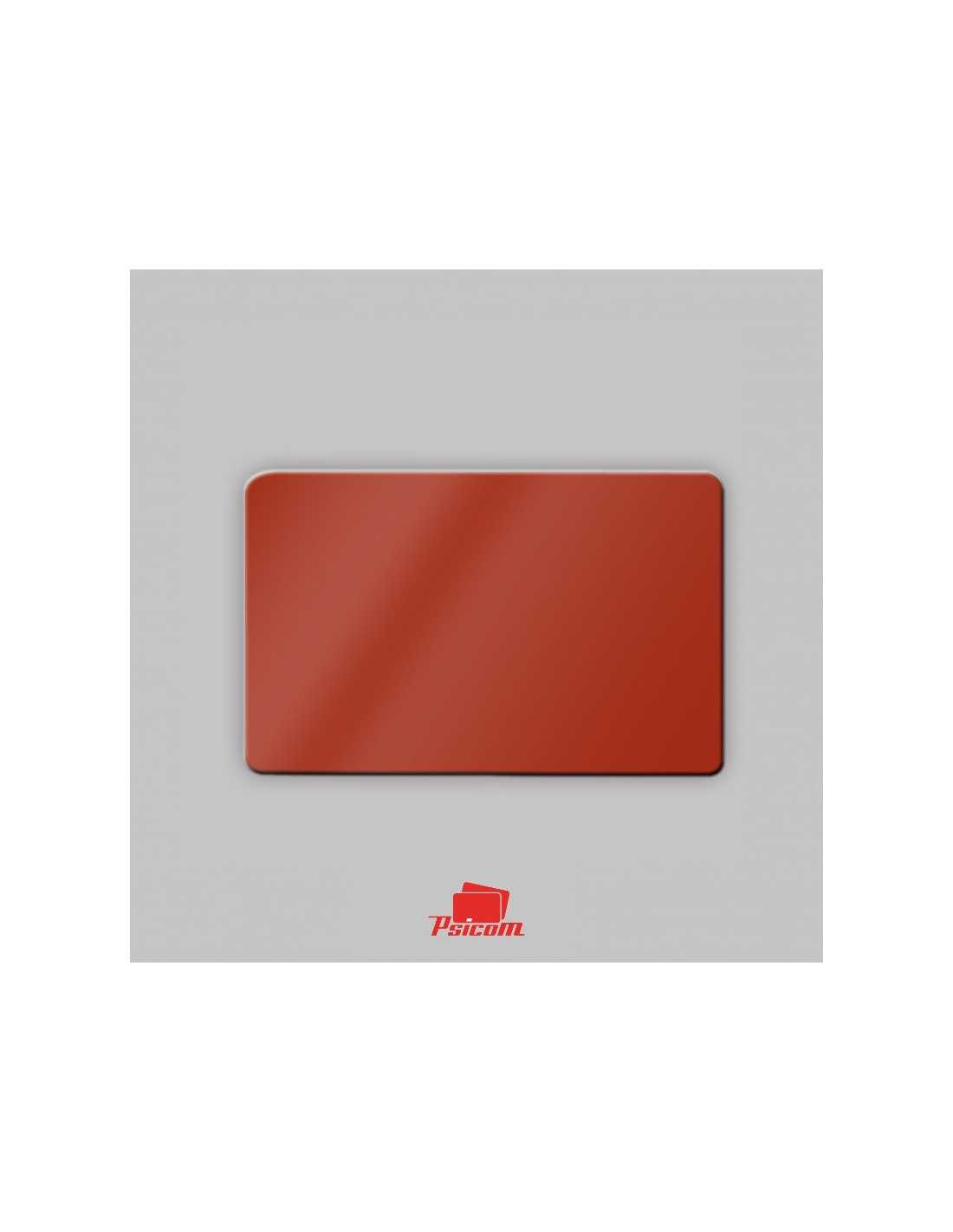 Référence : PSICV017 - Carte PVC laminé 0,76 mm, format 86 x 54 mm, coins arrondis, fond rouge, R° V°, teintée dans la masse.