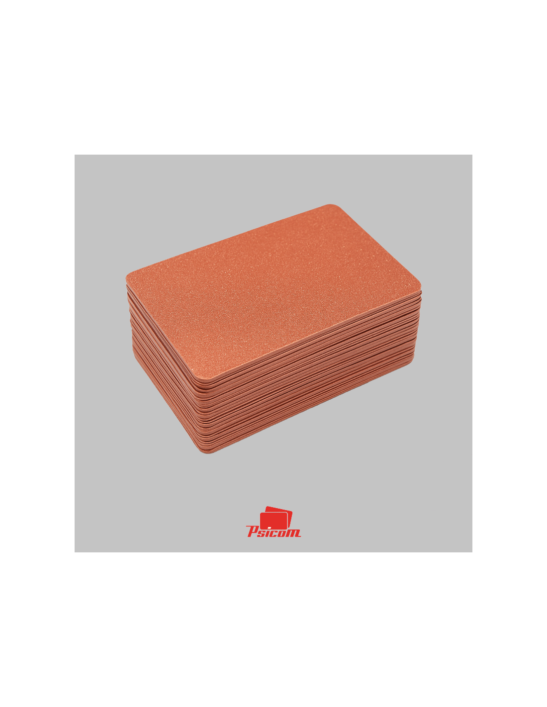Référence : PSICV027 - Carte PVC laminé 0,76 mm, format 86 x 54 mm, coins arrondis, fond bronze pailleté brillant, R° V°, teintée dans la masse.
