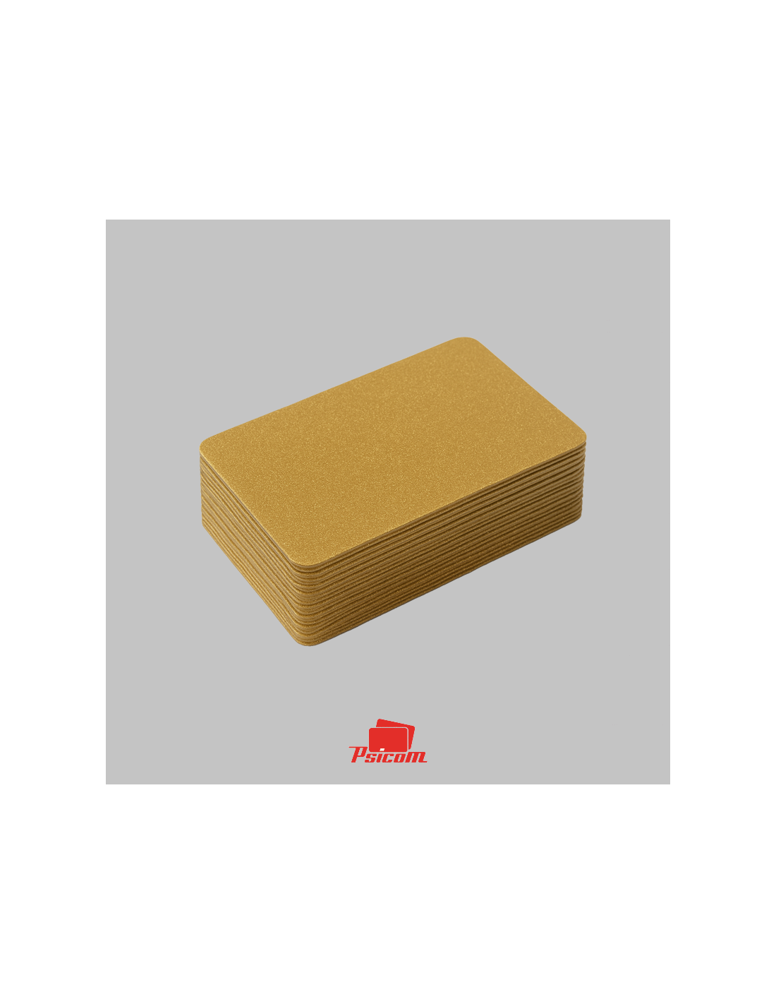 Référence : PSICV022 - Carte PVC laminé 0,76 mm, format 86 x 54 mm, coins arrondis, fond or pailleté, R° V°.